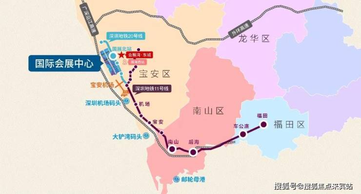 交通配套方面,深圳会展湾·东城同样具有显著优势。项目直线距离已通车的地铁12号线和20号线国展北站仅约300米,其中20号线可实现3站直达机场,7站抵达前海,为居民的出行提供了极大的便利。而被誉为“换乘之王”的12号线,更是链接了宝安、南山、蛇口等城市核心区,轻松实现全城便捷通达。