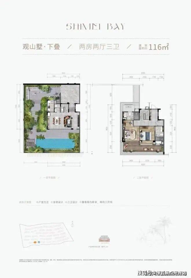 |建筑面积约116㎡○三卫设计,加倍从容,生活自在不拥挤○户型方正,全明设计,将阳光纳入生活○约8.4m大横厅,舒阔尺度,重拾旅居美好○客餐厨花园一体,LDKB专享度假格局○客餐厨与卧室,南向三开间,坐拥理想山海○主卧套房,约8.4m阳台,IMAX级瞰景体验○花园入户,赴自然邀约,开启另一种抵达