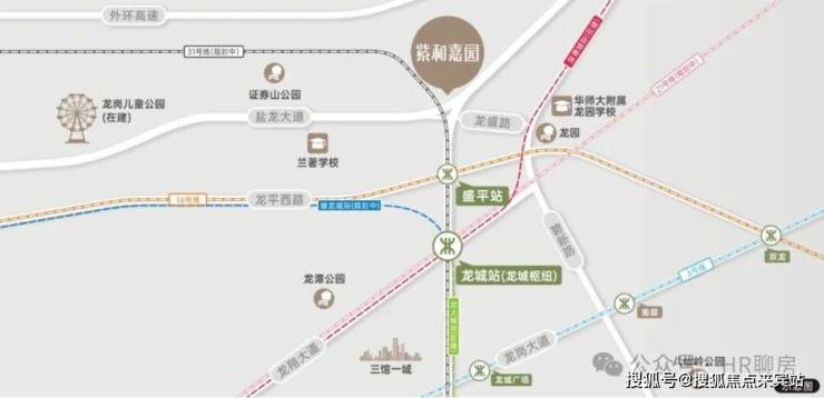 16号线盛平站距项目仅约1km,骑行约5分钟可达,可快速通达大运和坪山中心;