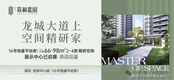 项目就在16号线盛平站旁,3.2容积率,3公里范围内可以享受到龙岗中心城的顶级配套,今年买今年交楼,产品是66-98㎡2-4房,绝佳打新盘!品质高、价格好、配套全、一步到位,龙岗中心城性价比最高的项目。