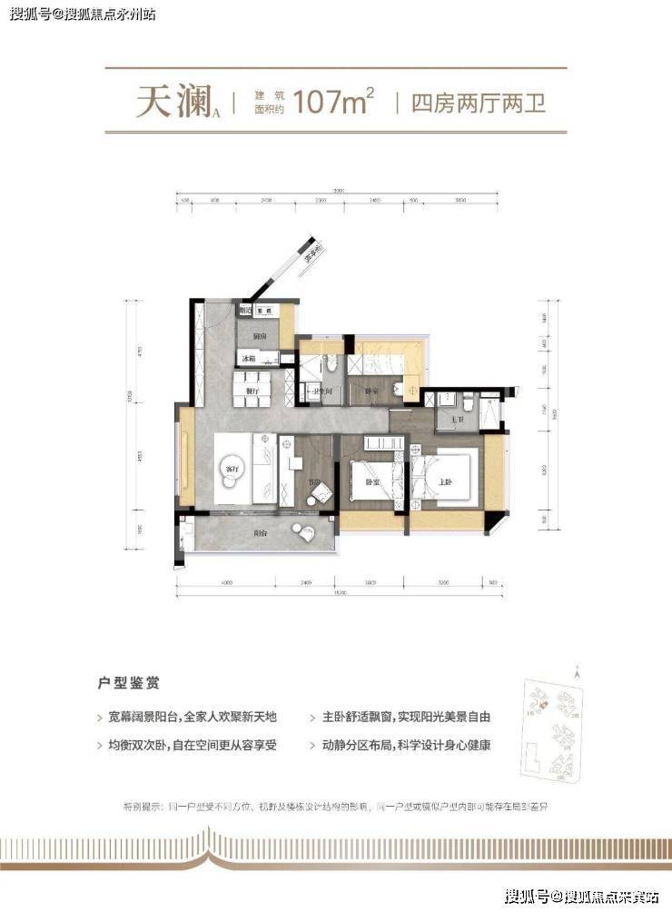 改善优选:107㎡四房的全周期居住解决方案,作为项目的改善型产品,107㎡四房两厅两卫户型瞄准了光明片区成长型家庭的需求,通过合理布局和尺度把控,实现了"一步到位"的居住梦想。该户型采用横厅南北通透格局,6米的客餐厅开间配合6.7米长的南向阳台,营造出媲美更大户型的空间气场,重新定义了区域内四房产品的标准。