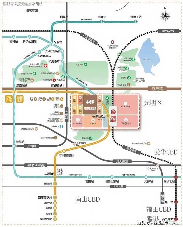 项目位于光明区凤凰城板块光侨路与观光路交汇处,属于光明城站辐射核心区,是光明首宗限价破5万/㎡的地块(毛坯限价5.03万/㎡)。