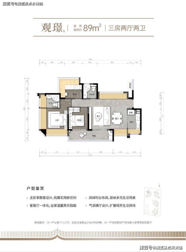 尺度突破:89㎡横厅户型的场景化创新,此次加推的89㎡横厅三房是项目的明星产品,代表了新规下户型设计的新思路。与传统竖厅相比,该户型采用5.4米的超大开间设计,配合6.2米长的南向景观阳台,形成了极具冲击力的空间感受,彻底改变了人们对百平米以下户型的固有认知。这种设计不仅提升了空间利用率,更重构了家庭生活的互动场景。