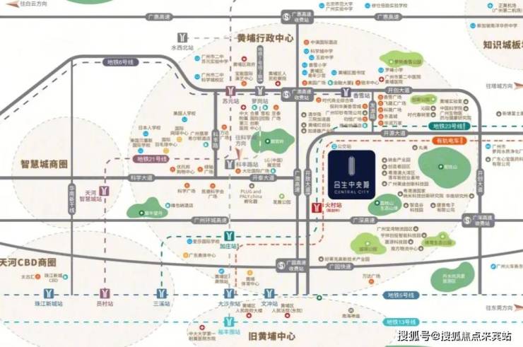 合生中央城位于黄埔科学城产业核心区,对面就是创新企业孵化集聚区之一的企业加速孵化器。