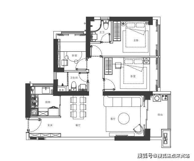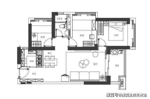 设计的是竖厅格局,进门入户玄关,LDKB一体化设计,U型厨房,卫生间干湿分离,得房率约75%(不含赠送),东南朝向。