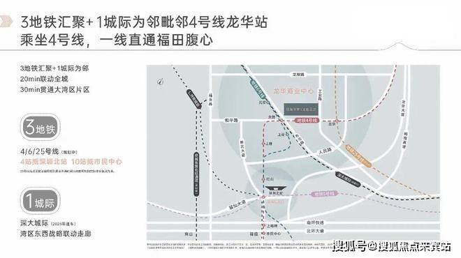 项目距地铁4号线龙胜站、龙华站约1.1公里,3站直达深圳北站(换乘5/6号线及高铁)。规划中的18、21、25号线(在建)及深大城际(2025年通车)将进一步提升通达性,快速连接福田、宝安机场等核心区域。周边主干道福龙路、布龙路无缝衔接沈海高速,驾车30分钟覆盖深圳全域。项目还配建公交首末站,实现“地铁+公交+自驾”立体交通网络。