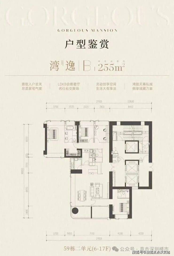 前海桂湾「前海时代尊府」取证加推最后大平层户型,为59栋的三个单元(59-1/2/3栋),面积约为215-255-295㎡,三梯两户,全南向景观,预计2026年交付。