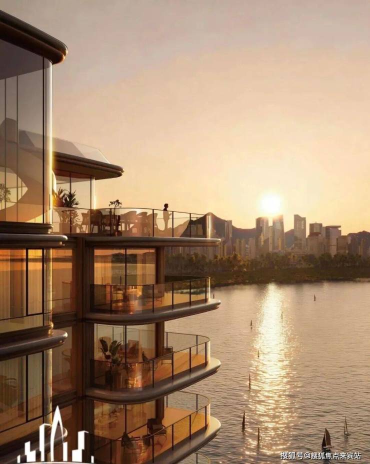 从下方效果图看,外观设计的非常不错,质感满满的,大面积的落地窗玻璃+弧形转角设计,通透性非常好,也能最大程度看摩天轮和海景。