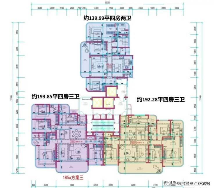 总楼层:最低22层、最高24层,每层布局2至3户,还有地下1层。