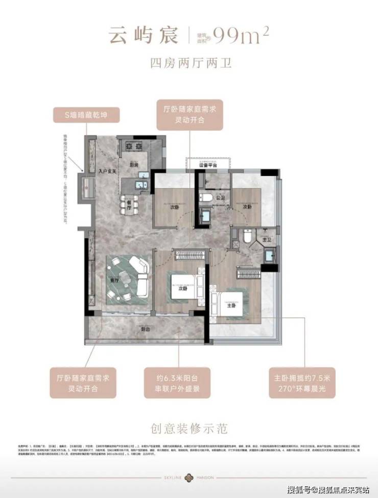精研精装产品价值内核,以健康人居三大体系与生活美学六大主张为核心理念,定制您的永续品质美学家。建面约83-133㎡3-4房宸式美学新著,LDKB巨幕方厅,跑道式景观阳台,小家化星级酒店主卧套房,270°环幕全…