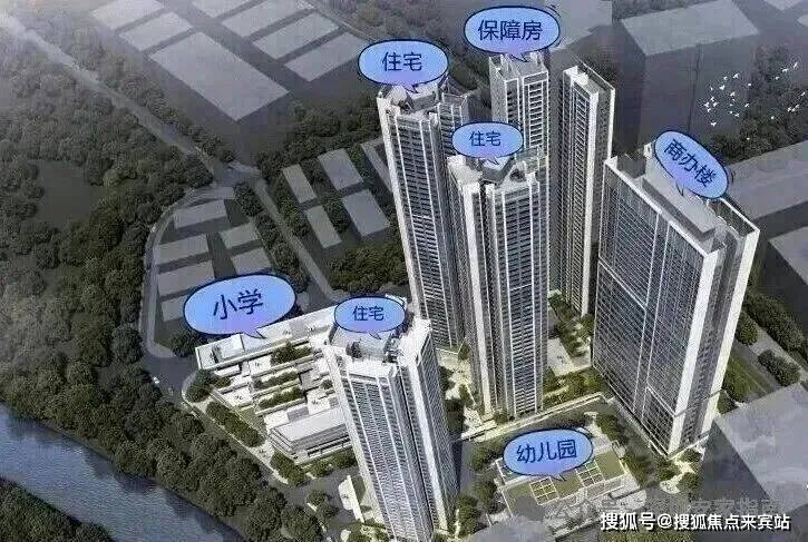 项目共规划5栋超高层建筑,包括3栋33-49F超高层住宅楼,1栋40F保障房,1栋39F写字楼以及1座12班幼儿园、1座18班小学。