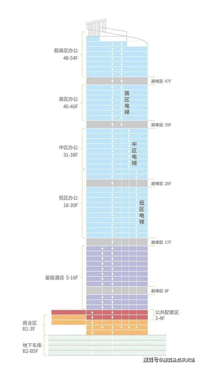 【层高】:标准层高4.2米,超高区(48F以上)4.5米