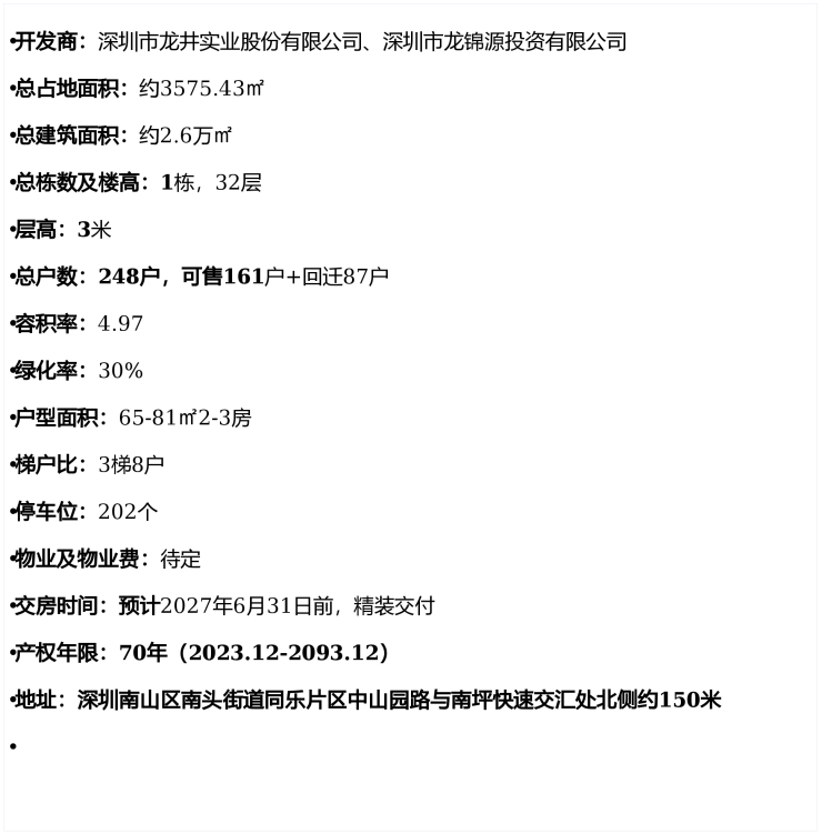 地处南山与宝安交界处,紧邻地铁12号线(在建)同乐南站,步行距离约500米,项目坐拥南山核心区位,毗邻科技园、前海自贸区及留仙洞总部基地,5站可达高新园,辐射粤港澳大湾区核心产业带,具备承接高端人才居住需求的潜力。