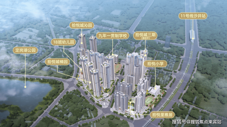 拾悦城二期占地约3.54万㎡,总建面约17万㎡,共规划了14栋30-48层超高层住宅、4栋26-33F高端写字楼及部分商业配套组成,还规划了一所36班九年一贯制学校、一所18班幼儿园。