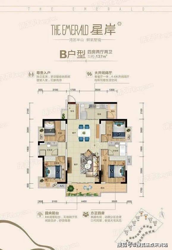 THE EMERALD星岸地上面积约178-261㎡坡地别墅,三面花园、三重奢景的港式格调园林,以高于43%的绿化率、低于1.3的容积率,数十种名贵树种精心打造,使居住更富意趣。