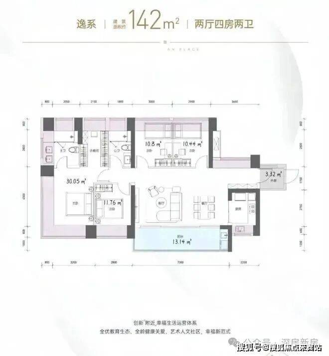 产品面积有118-140-160-258m² 的新规4房产品,得房率超过 90%,带精装交付,外立面采用全铝板+玻璃幕墙设计,可以说是坂田的改善天花板!