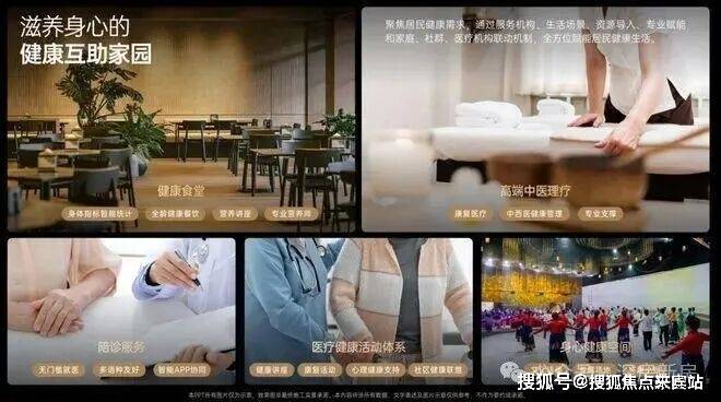 规划2所社康服务中心+1所长者服务中心+1所健康食堂+1批养老公寓+1间中医理疗中心+十余所康养文娱健康场所。
