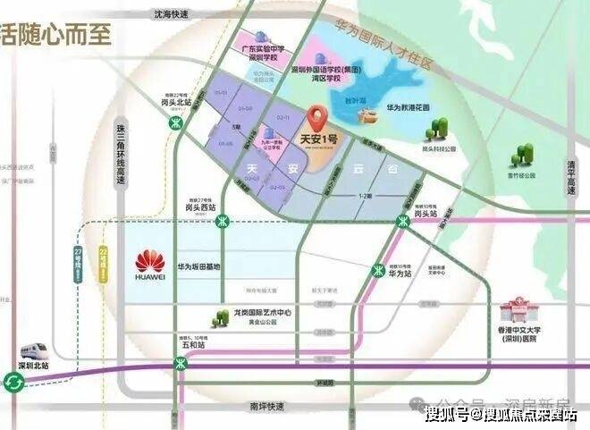 作为龙岗坂田北最大体量旧改项目,天安云谷位于坂田街道冲之大道和坂李大道的交汇处,毗邻地铁22号线岗头北站(建设中)。项目占地面积约13.14万㎡,由8个地块组成,建面约128万㎡,集产业、办公、居住、商业等于一体。其中,三期是天安云谷首个包含住宅的项目,建成后将有21栋住宅+2栋酒店+2栋公寓办公,预计提供住宅5886套,保障房640套。