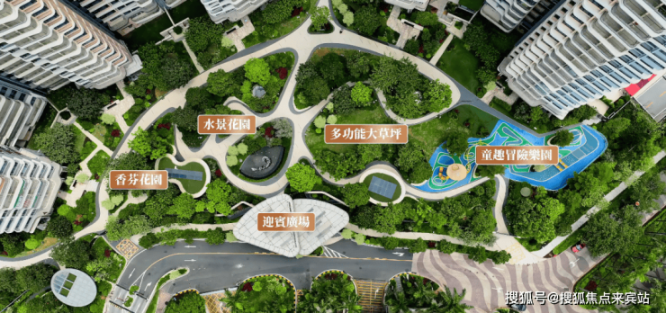 不像一些项目一眼到头的草地或者两排树木敷衍业主,这里划分出五大主题园区,使得整个园林视觉体验很有层次递进感。