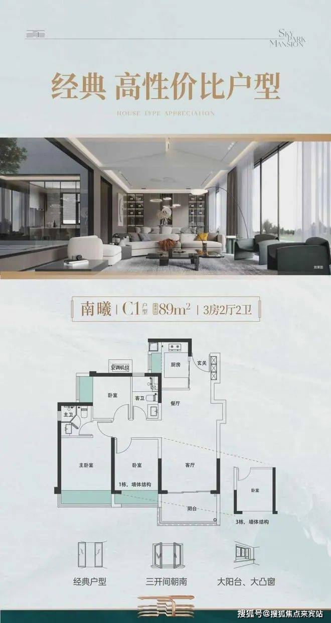 项目共由3栋总高32-38层高的住宅组成,其中1栋住宅38F,2栋住宅33F,3栋住宅32F。