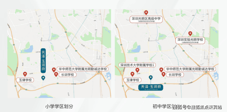 光明区实验学校同心小学、华中师范大学附属光明勤诚达学校(小学部)、光明区玉律学校(小学部)、光明区田寮小学