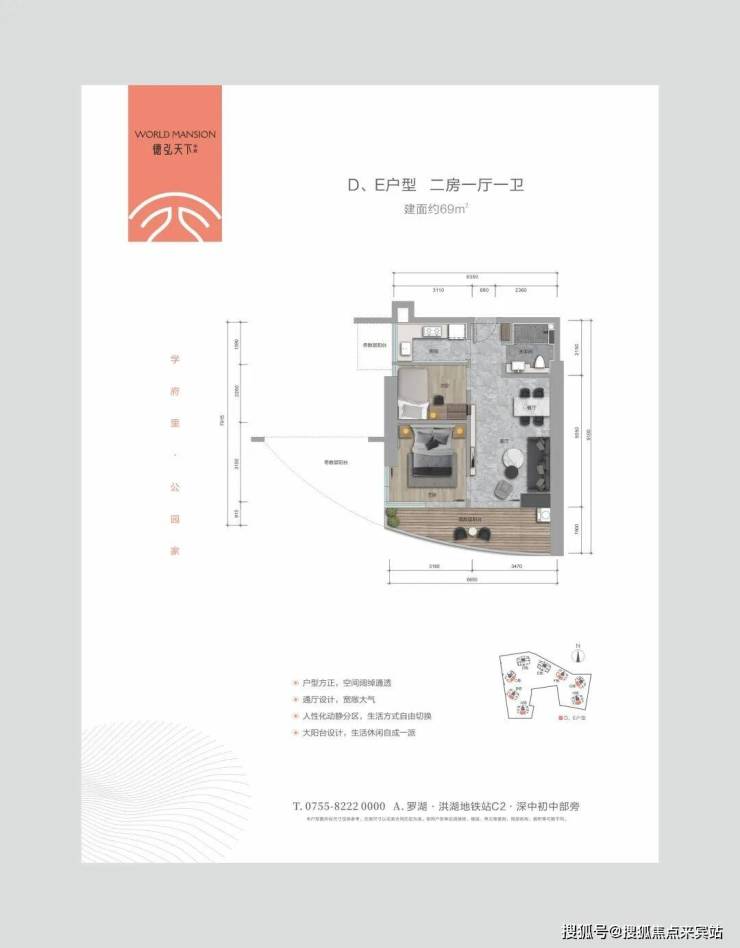 德弘天下华府是由茂业集团打造的约27万㎡超高层大体量大园林纯住宅社区。项目主力户型为约69—76㎡2-3房平层住宅以及463—466㎡复式住宅,由8栋超高层建筑组成,是城市的形象标杆。半围合式布局,270度奢侈景观,于罗湖天际观一城繁华。