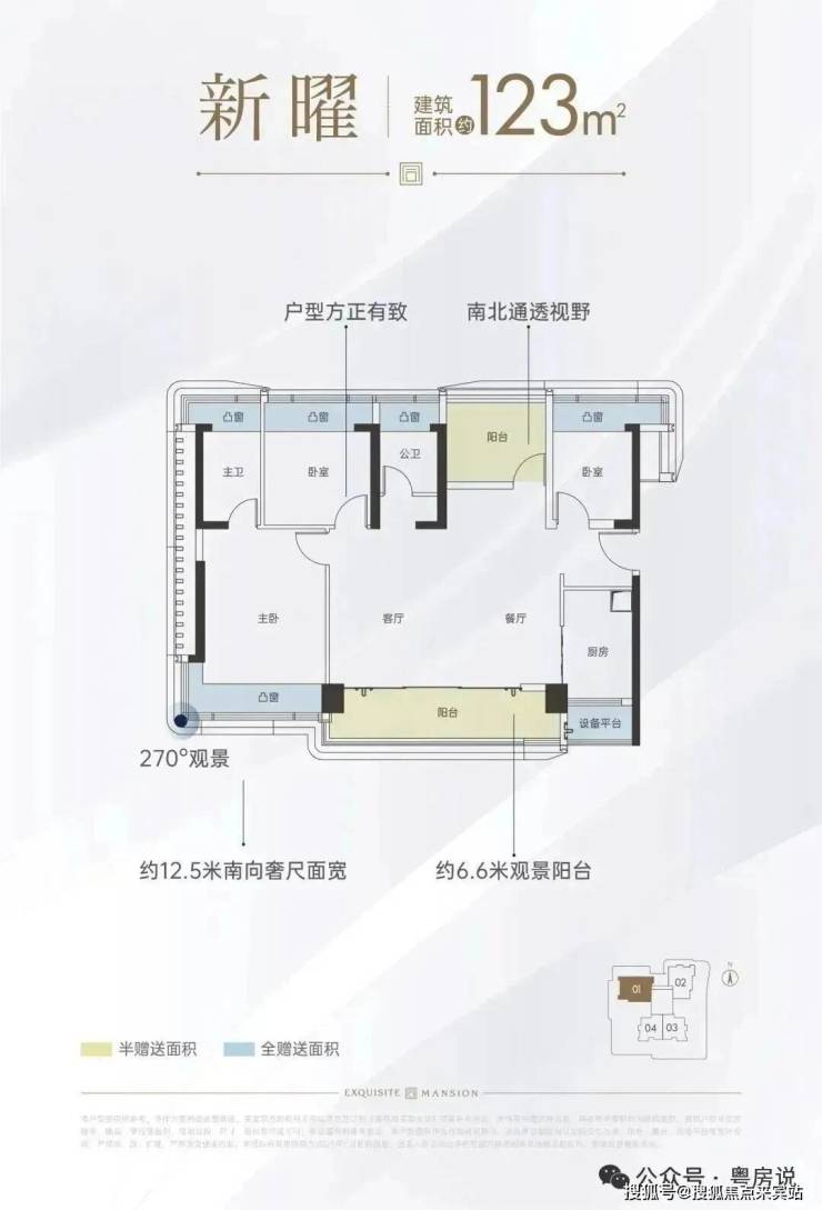 113㎡的4房2厅2卫,设计的是横厅南北通透格局,进门入户玄关,客餐厅一体化设计,餐厅位双飘窗无敌视野,全屋6个飘窗面,客厅连接次卧出5.6米长的巨幕大阳台,L型厨房带1个设备平台,卫生间干湿分离也带1个设备平台,得房率约74.5%(不含赠送),正东朝向。加上赠送约95%得房率。
