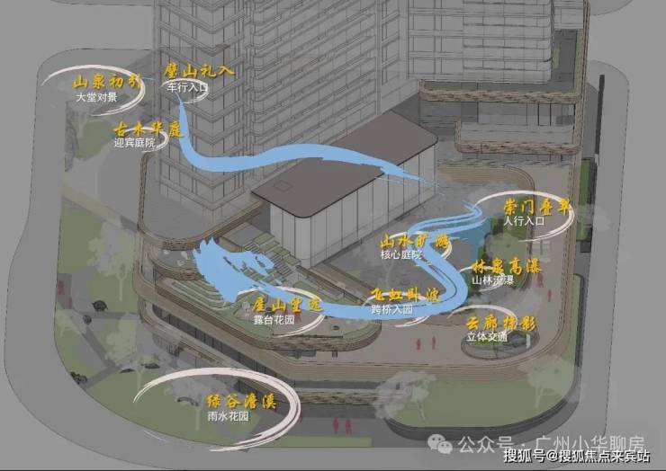 项目还架空了4层楼来用作会所,形成了10多米的高度差。比起一般豪宅,华樾的视角更优,首层住户就相当于一般楼层的5楼;同时隔开了周边噪音,保证小区私密性和尊贵感,增加了景观层次。而抬高的空间更没浪费,这里将打造一个船舷花园,相当于一座立体都市秘境。如此做法,在广州的豪宅项目中并不多见