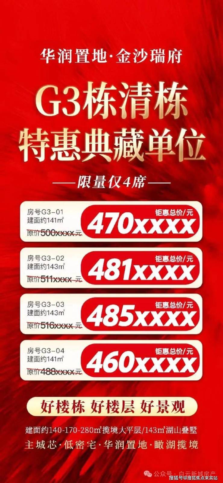 华瑞置地瑞府项目的R1、R2、R3、R4是政府配建房,大平层住宅由G1、G2、G3、G4四栋,G1和G2基本售罄,目前在售的是G3栋,G4栋,近期G4栋加推,叠墅的产品188套,目前可以选择的空间还是比较多。目前价格区间:01户型:440-57万/02户型:430-550万/03户型:420-550万/04户型:400-480万。更多优惠情况可以私信了解。