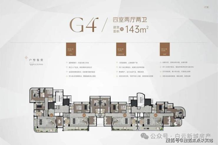 项目的总规划为349户,并包含多个不同类型的住宅产品,以满足不同购房者的需求。除了4栋(R1-R4)政府配建房外,项目对外销售的产品主要包括叠墅、小高层和高层,每户户型建面均为143㎡。这使得该项目满足了不同家庭结构的需求,尤其适合追求大空间和高品质生活的高端家庭。