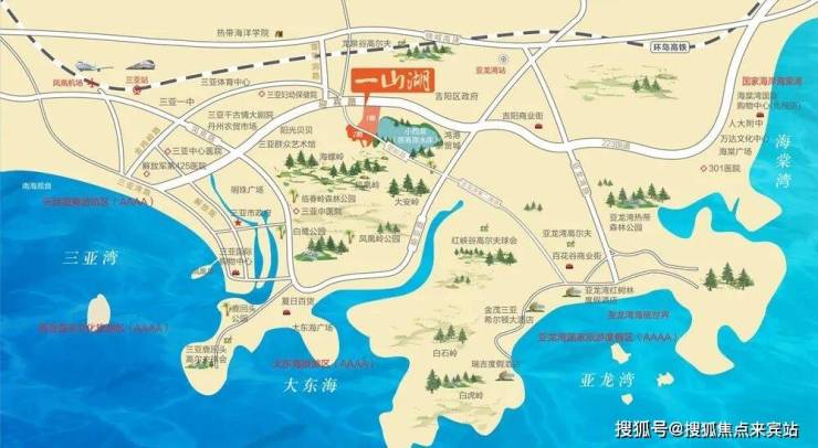 海螺岭、凤凰岭、大安岭、白石岭、白虎岭、三亚湾、大东海、亚龙湾、海棠湾