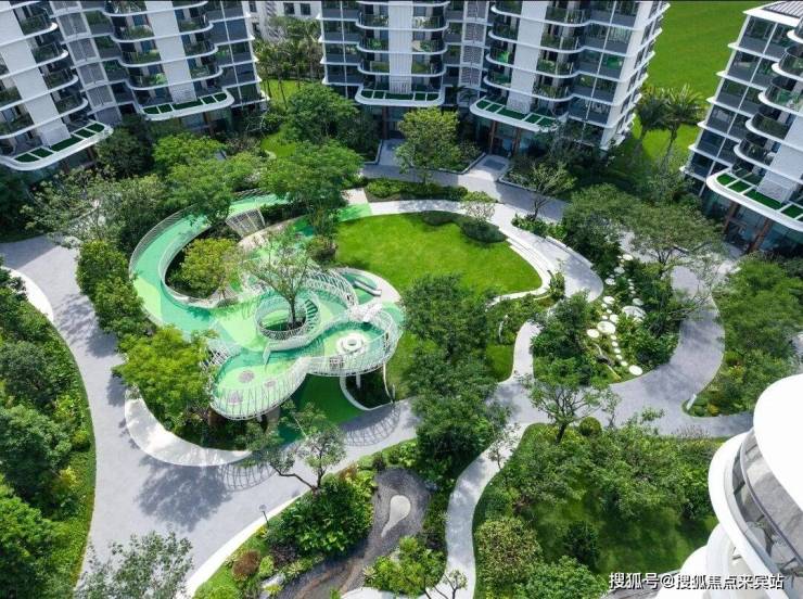 园林景观以“云、水、林”为设计脉络,中央静卧的“云朵镜池”蜿蜒流转,天光云影倒映水面,营造出“如云在天,皆若空游无所依”的空灵意境;亲水云台、星光吧台、儿童主题乐园等多元场景,在热带丛林的掩映下,演绎出自然与生活交融的热带水岸诗篇。