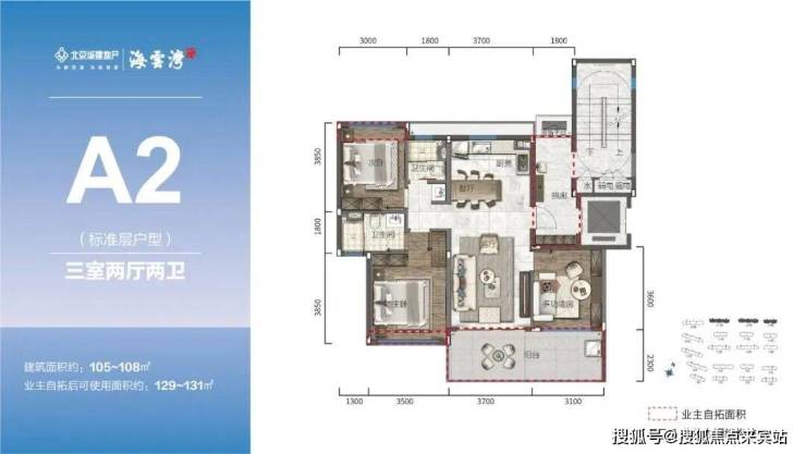 主力107-120㎡超大横厅宽境墅质洋房三室两厅奢适尺度阔景阳台,纵览一线海岸