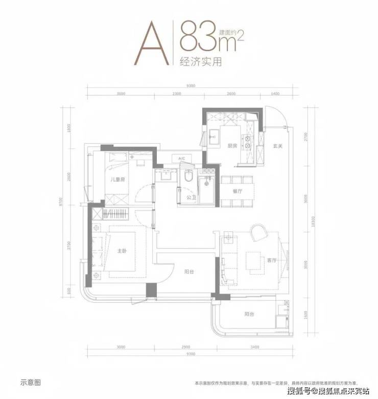 83㎡的3房2厅1卫,设计为竖厅,客厅3.18米宽,LDKB一体,动静分区。主卧11.82m²,次卧8.2m²和7.32m²(去墙)。U型厨房,三段式卫生间。得房率75.64%(不含赠),阳台5.44m²,南或东北向。
