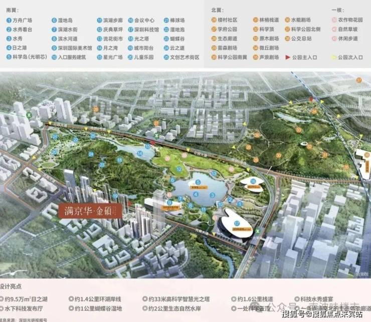 满京华·金硕项目直面占地约208万㎡的科学公园(在建中),近享深圳国际美术馆(暂定名、在建中)、深圳科学技术馆、科学城体育中心(在建中)、会议中心(规划中)等市政级文体配套;还坐拥狮山公园(规划中)、约9.4万㎡的东周文化公园,约10万㎡的开明公园,约56万㎡的新城公园等丰富绿色生态资源。