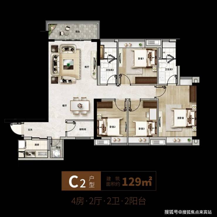 【建面约129㎡阔卓四房两厅两卫双阳台】