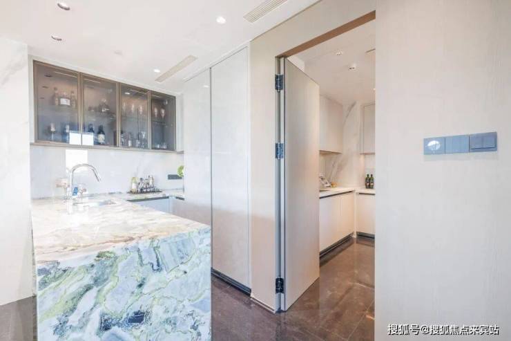 岛台采用的是冷翡翠大理石,清灵如诗,莹洁似玉,每一块都是独一无二的艺术品。