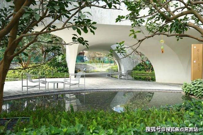 登上廊桥,空间前后的高差和造景设计,让空间变成可以拥抱阳光和新鲜空气的开放式空间,搭配流水、花园,整个空间更具有艺术感,纵情远眺,每一眼都是不同的体验;桥下停留区,光影在如镜的空间中交织,设置休憩场所,会客、交谈……让故事自在发生。