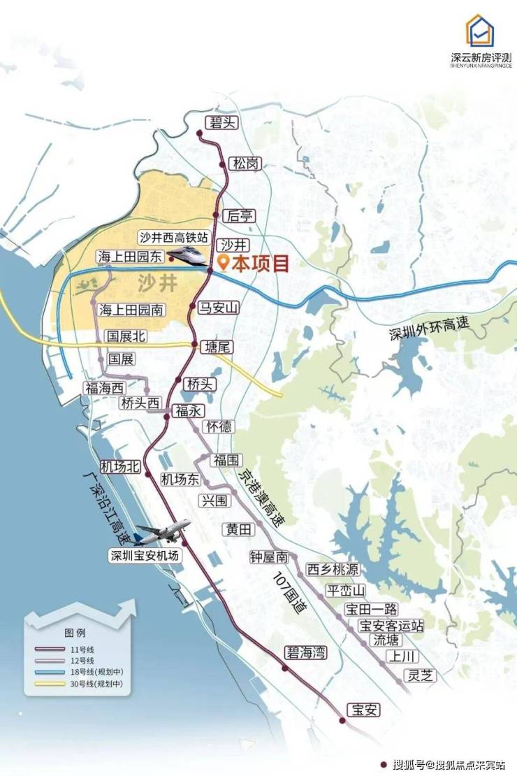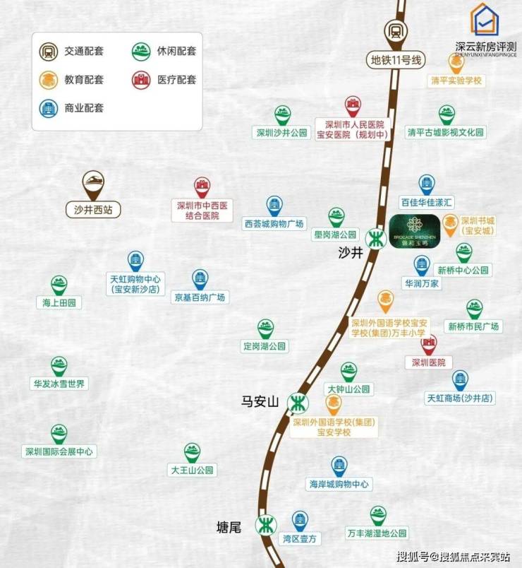 轨道交通:距离11号线“沙井站”直线约350米,步行550米,8-10分钟,6站直达宝安机场,8站宝中,9站前海