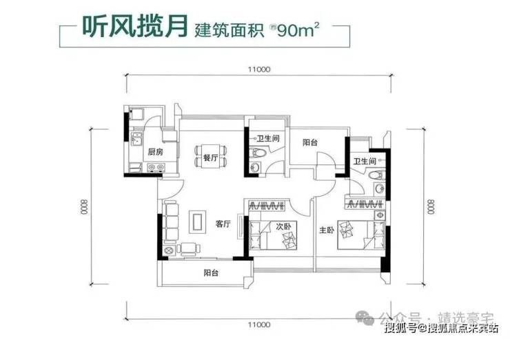 [精粹空间] 建面约88-90㎡经典人居产品,户型方正实用,户户朝南,超高使用率,超低梯户比,打造舒适居家尺度。