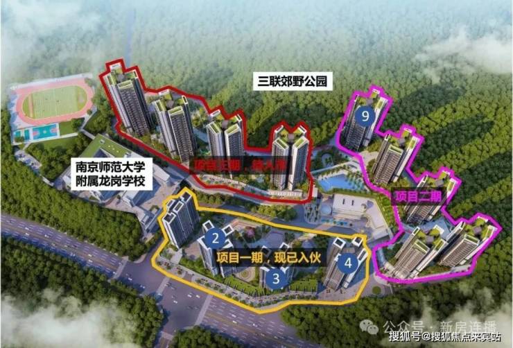 南京师范大学附属龙岗学校(已开学),百合外国语世纪中学(已建成预计2023年开学),招商学校(建设中),500米内三校毗邻,社区公立幼儿园已开学,12年一站式步行教育,为孩子上学路减负。