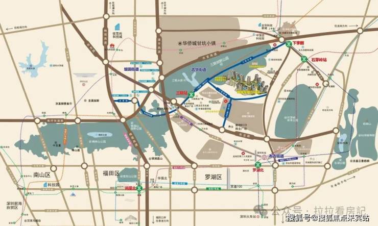 项目距规划中地铁25号线三联站约700m,5站进南山;经m565/m541公交线路3站(约10分钟)衔接地铁14号线石芽岭站,4站抵福田,便捷路网,高效通勤。