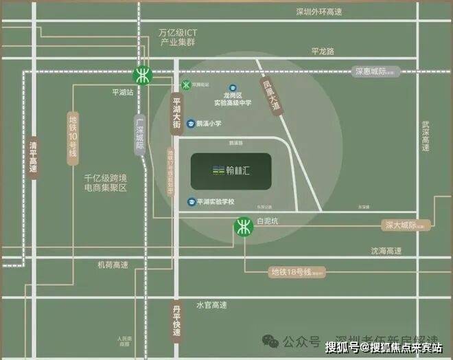 区位方面,岗宏翰林汇位于龙岗区平湖街道平湖大街与湖岭路交汇处,南侧在建园岭学校,还有平湖实验学校,作为深圳17个重点发展区域之一,平湖的定位是“金融+科技+总部”为特色的战略新兴产业基地,并且平湖也是深圳跨境电商产业主要聚集地之一,跨境电商总量及规模处于全市领先地位。