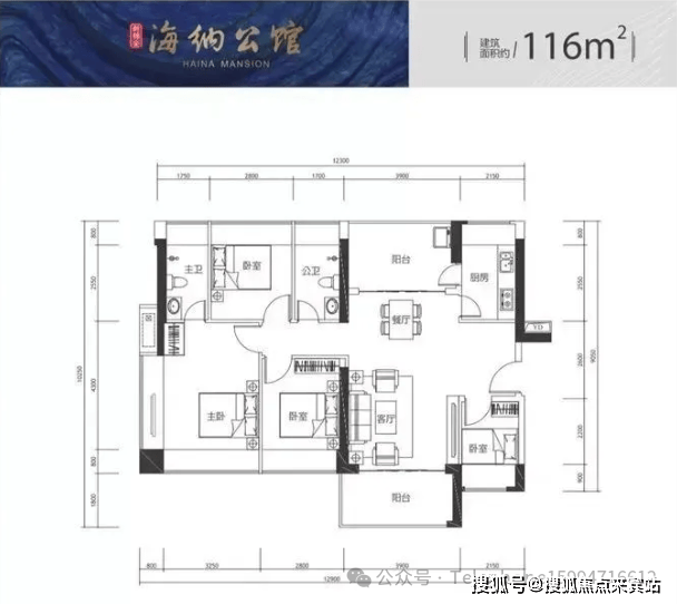 116平方米(4房2厅):同样分布在1C、1D、1E、1F、2A、2B栋的49-52层,备案449户