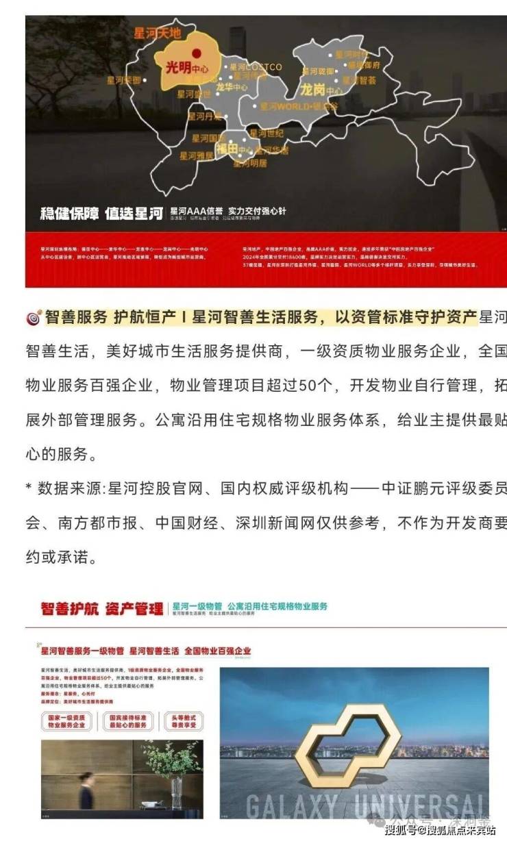 🏢 五、星河品牌 · 安心之选- 星河控股 38年深耕深圳,连续5年 AAA信用评级- 星河丹堤、星河WORLD等多个深圳标杆缔造者- 星河智善生活 一级物业,专业资管服务大品牌=交付稳、物业好、二手更保值✨ 六、产品力:小面积·大未来建面约43–70㎡精装公寓 · 收官T19- 43㎡灵动寓:单身/过渡/出租首选