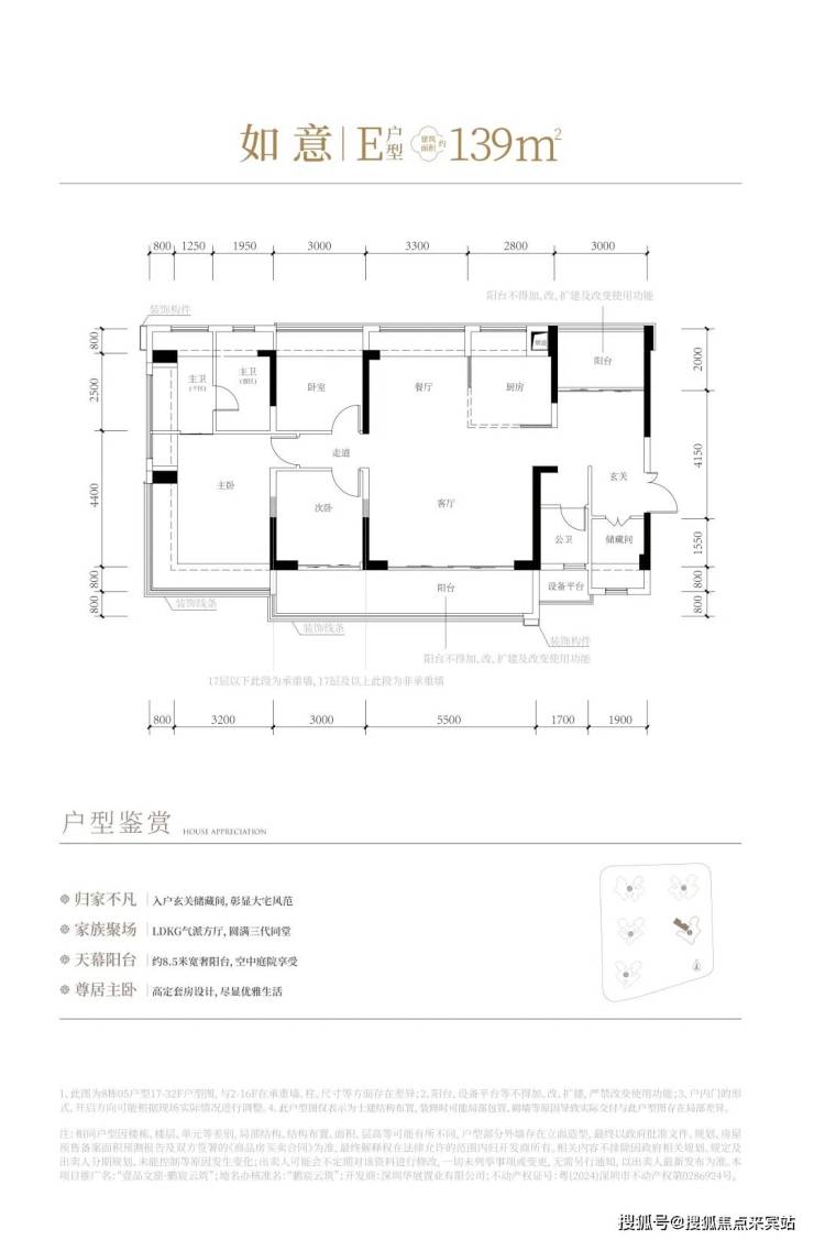 创新型成长户型,适应家庭不同阶段的需求变化,拔墙设柱设计、分户S墙、创新LDKC内外亲子双区等