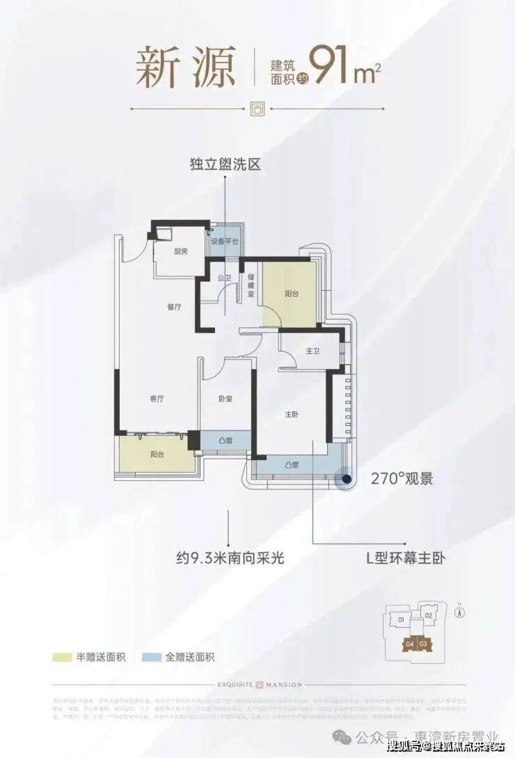 建面约91-123㎡高定新规住宅,使用率94%!约3.1米层高,扩容生活尺度。户户坐北朝南,三面采光,打造270°环幕主卧。131户配置132个车位,3梯4户。
