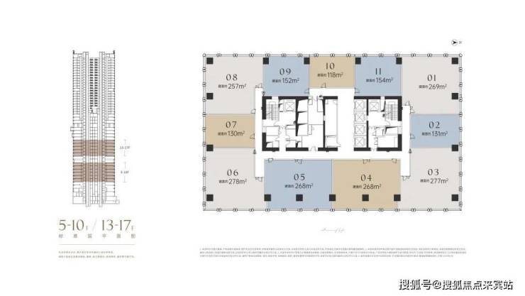 楼层总高:东塔,43F,206米,西塔,47F,205米 单层3至25层4.5米;26至47层3.6米