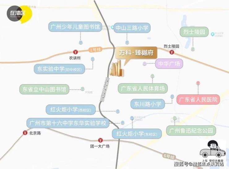 万科·瑧樾府,位于越秀老城区核心腹地,距地铁1号线农讲所约400米,6号线团一大广场站约700米。