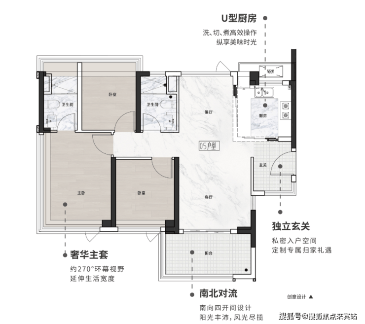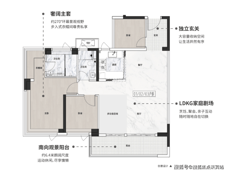 项目主推建面约75-108㎡全南向三至四房,最高使用率120%,把每1㎡用到极致,同户型"天花板”。每个户型都被玩出花了,主打就是一个惊艳。